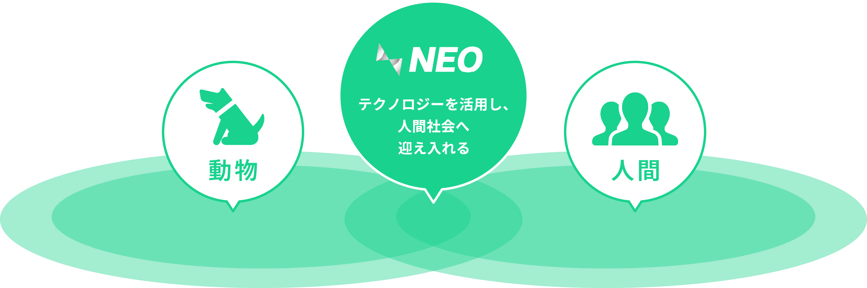 我々は動物と人の共生を実現するためにはテクノロジーの活用が必要不可欠だと考えております。人間社会を「変化させる」のではなく人間社会に「迎え入れる」ことで双方にとって新しい関わり方を模索し、お互いが利益・恩恵を感じることで意義のあるのコラボレーションを実現することを弊社の最大のテーマとしております。